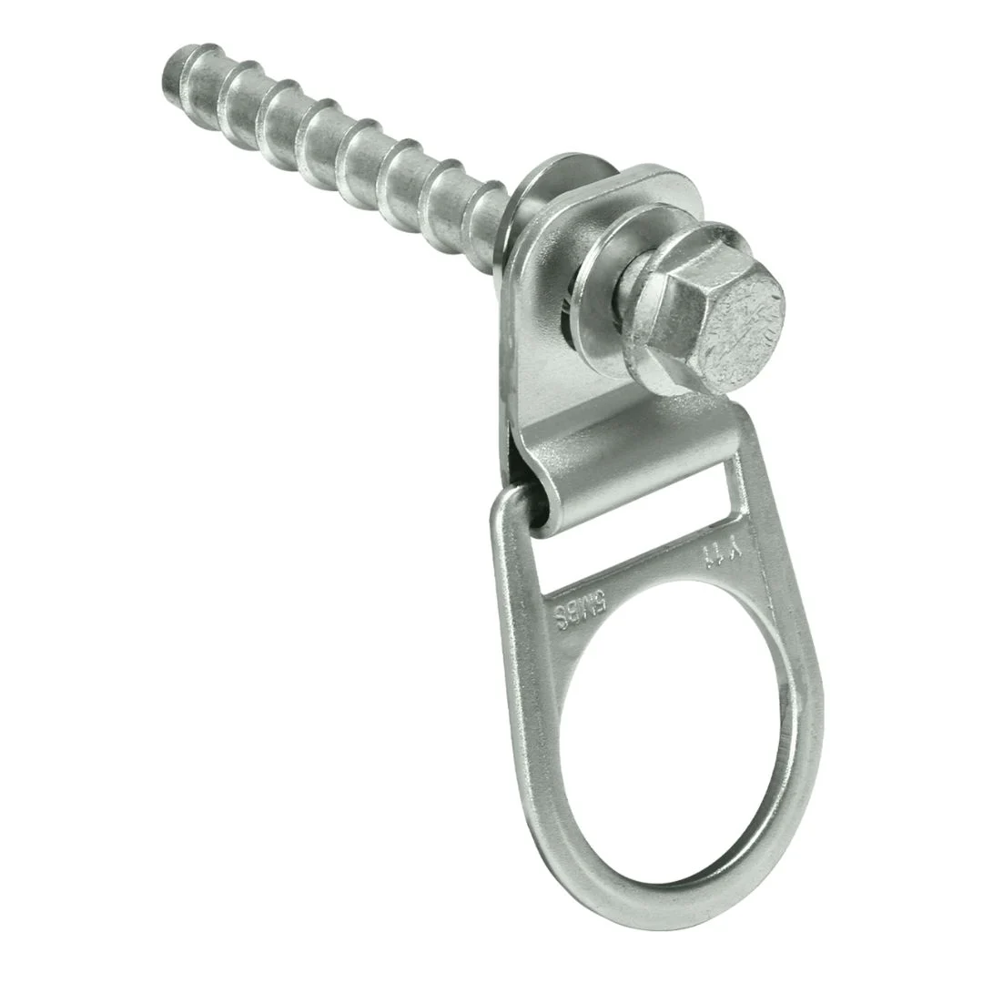 Anclaje giratorio con anillo en D diseñado para instalación en concreto curado, ideal tanto para aplicaciones temporales como permanentes. Incorpora una placa de anclaje de acero inoxidable y un anillo en D de acero de aleación, con un buje mecanizado que permite la rotación completa de 360° del punto de conexión, facilitando la movilidad del usuario. Su diseño reutilizable garantiza una conexión segura y versátil en diferentes entornos. Ofrece una resistencia estática mínima de 5,000 lb, con capacidad de usuario de 130 a 310 lb según ANSI y hasta 425 lb según OSHA. Cumple con los estándares OSHA 1926.502 y 1910.66.