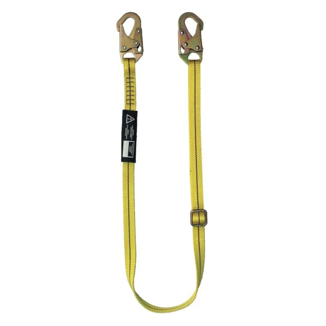 Correa de posicionamiento regulable con gancho fabricada en cinta plana de poliéster de 25 mm color amarillo. Es un estrobo de vida simple, con longitud máxima de 1,80 m (6 pies), diseñado exclusivamente para posicionamiento en trabajos sin riesgo de caída libre. Cuenta con mosquetón simple de doble cierre que soporta hasta 5000 lbs sin deformación. Tiene una capacidad de resistencia estática de 5000 libras y dinámica igual o mayor a 3600 libras, soportando un peso combinado de hasta 140 kg (usuario, ropa y herramientas). No es apta para detención de caídas a menos que se complemente con un absorbedor de energía. Certificada bajo ANSI/ASSP Z359.3-2019.