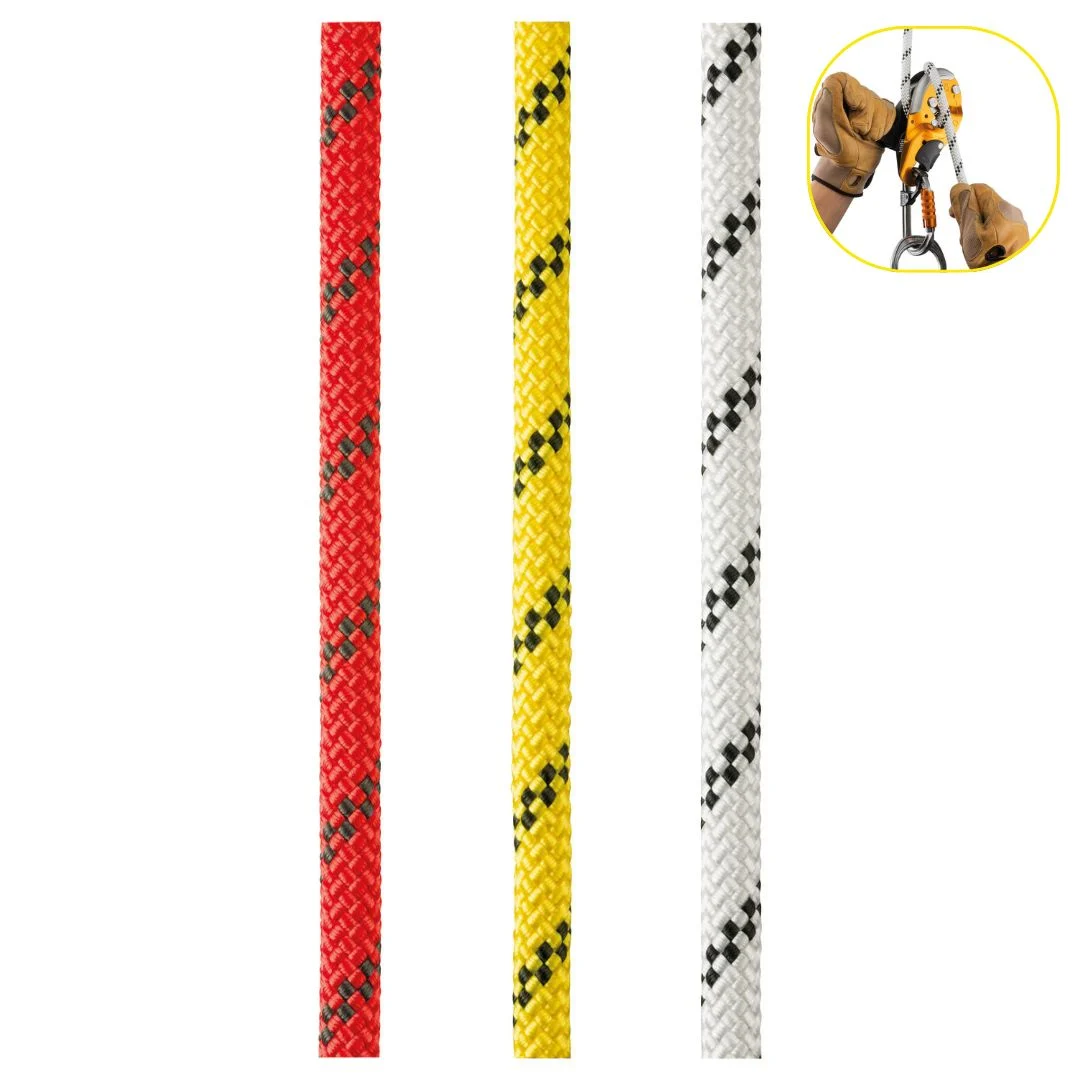 Esta cuerda semiestática de de rescate de 11 mm de diámetro está diseñada para trabajos en altura, ofreciendo un excelente agarre y maniobrabilidad. Su construcción con alma de poliamida y funda de poliéster con trenzado específico asegura un rendimiento constante y duradero. Gracias a la tecnología EverFlex, mantiene una gran flexibilidad incluso en condiciones difíciles como agua, polvo o barro. Tiene una resistencia de 22 kN con terminal cosido, soporta hasta 12 caídas con factor 1 y presenta un alargamiento estático del 3 %. Pesa 82 g por metro y está disponible en rojo, amarillo y blanco, en una longitud estándar de 100 metros. Cumple con las normativas CE EN 1891 tipo A, NFPA 2500, ANSI Z459.1, entre otras.