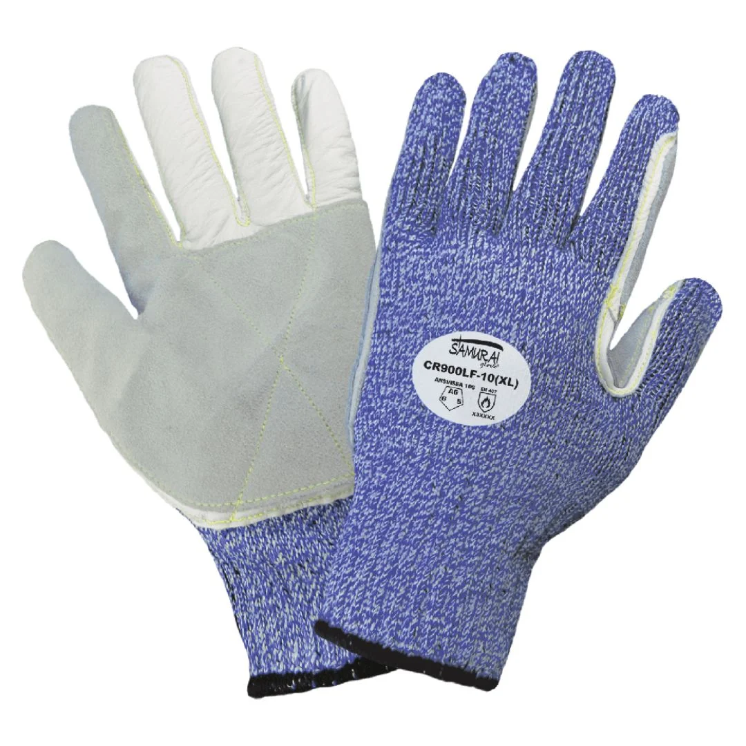 Guantes de alta resistencia a cortes, abrasión y perforaciones, con palma reforzada de cuero vacuno premium sobre una base sin costuras de Tuffalene® UHMWPE calibre 7. Cuentan con costuras de fibra de aramida para mayor durabilidad y resistencia al calor, puño tejido de ajuste seguro y dobladillo con código de color para identificar la talla. Certificados con nivel A6 de corte según ANSI/ISEA 105-2016, nivel 6 de abrasión, nivel 5 de perforación (262 N) y norma EN 407: X3XXXX.