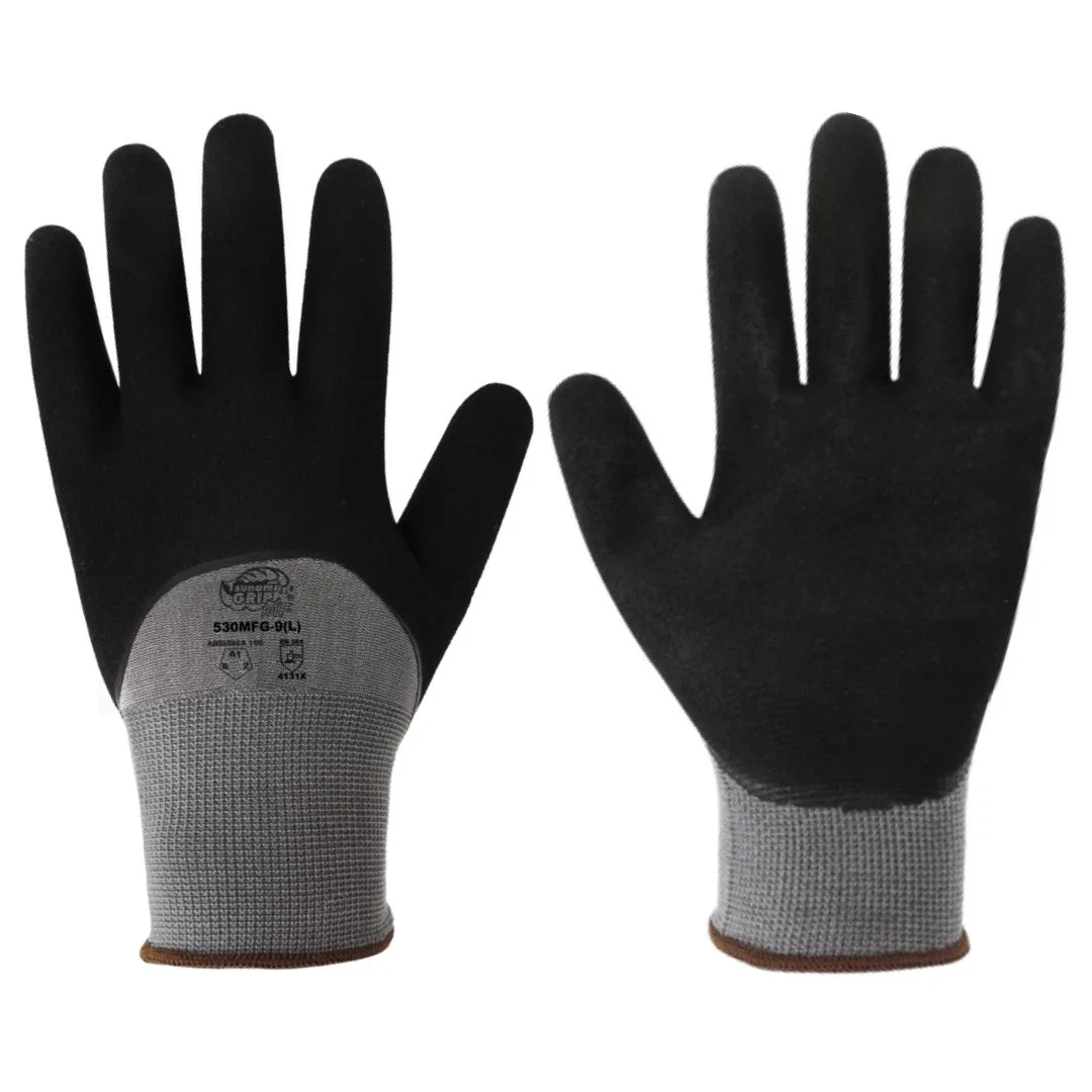 El guante de nitrilo acabado Mach doble inmersión cuenta con un exclusivo recubrimiento negro de nitrilo aplicado en doble capa sobre una base de nylon gris calibre 15 que cubre tres cuartos de la mano. Este diseño ofrece un agarre superior en condiciones húmedas y aceitosas, evitando la saturación por líquidos, y proporciona alta resistencia a la abrasión. El soporte de nylon ligero asegura comodidad y destreza, mientras que el puño tejido garantiza un ajuste seguro y previene que el guante se deslice durante su uso. Está certificado para uso en áreas protegidas contra descargas electrostáticas, cumpliendo con normas antiestáticas/ESD. Cumple con la norma EN 388 con niveles 4131X y el estándar ANSI/ISEA 105-2016, alcanzando nivel de corte A1, abrasión 6 y perforación 2, con resultados ASTM F2992-15 de 401 gramos en resistencia al corte y 42 Newtons en perforación.
