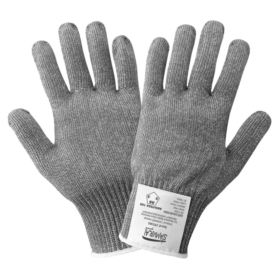 El Guante Samurai Food Grade Cut es un guante resistente a cortes, ambidiestro y certificado por la FDA para contacto con alimentos. Está fabricado con fibra UHMWPE Tuffalene® y cuenta con un tratamiento antimicrobiano AlphaSan® que previene y reduce el crecimiento bacteriano durante toda su vida útil. Tiene un dobladillo con color para identificar la talla fácilmente y un puño tejido que proporciona un ajuste seguro y cómodo, evitando que los guantes se resbalen. Cumple con el estándar ANSI/ISEA 105-2016, con nivel de corte A6, abrasión 3 y perforación 3, con resultados ASTM F2992-15 de 3,575 gramos y resistencia a perforación de 90 Newtons.